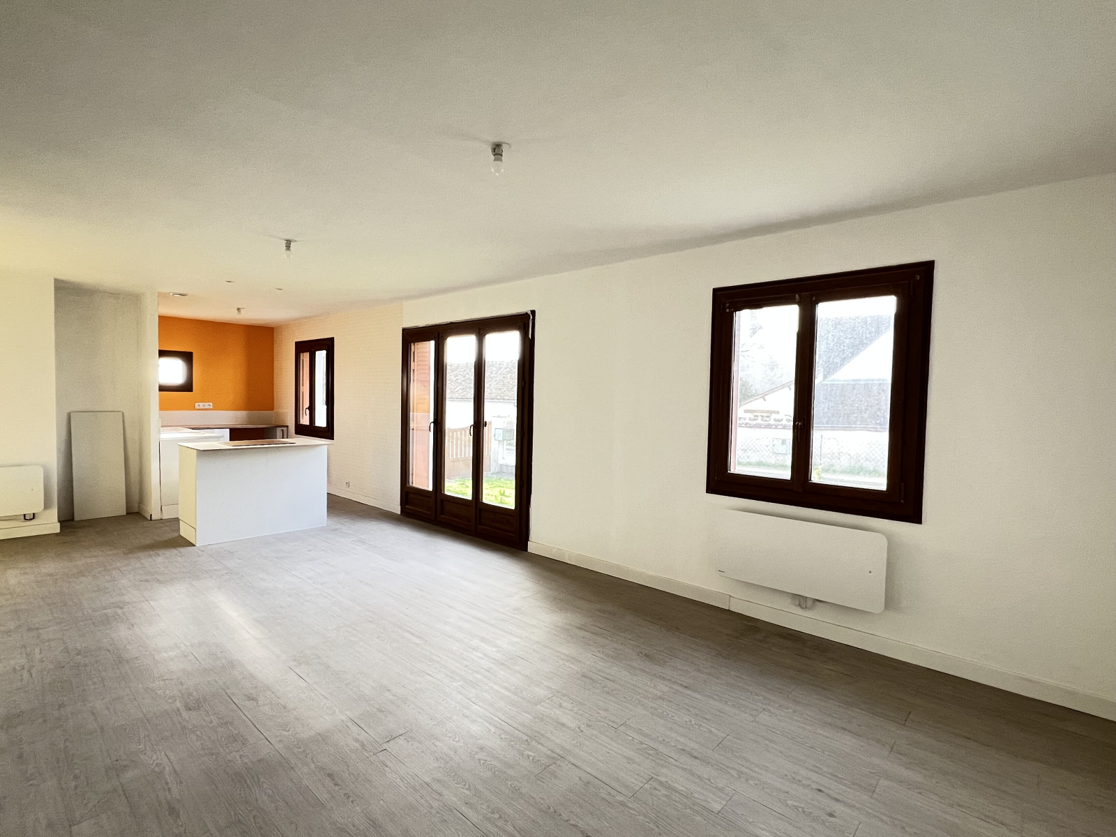 Salon avec coin cuisine équipée, 3 chambres dont une très grande.