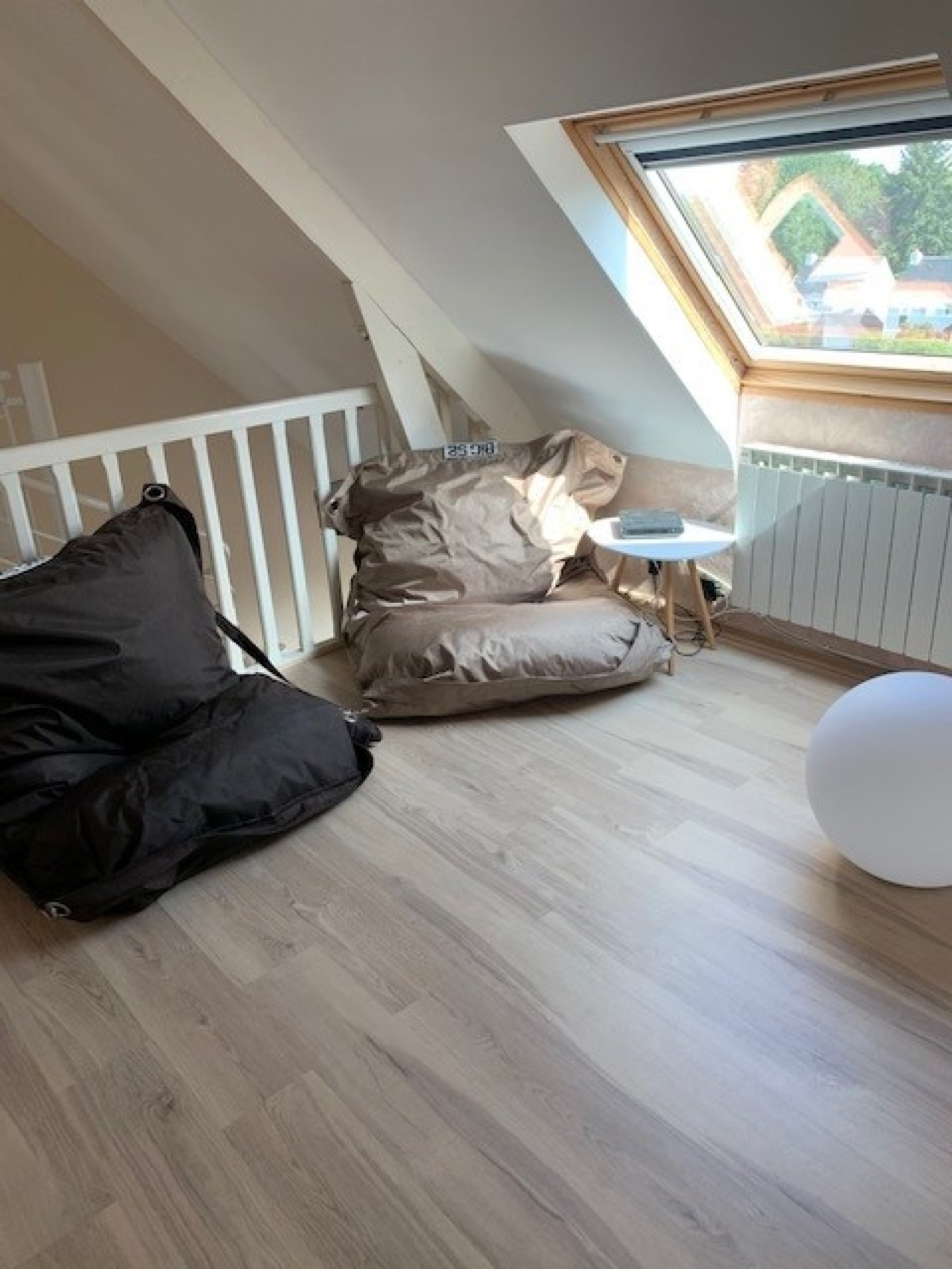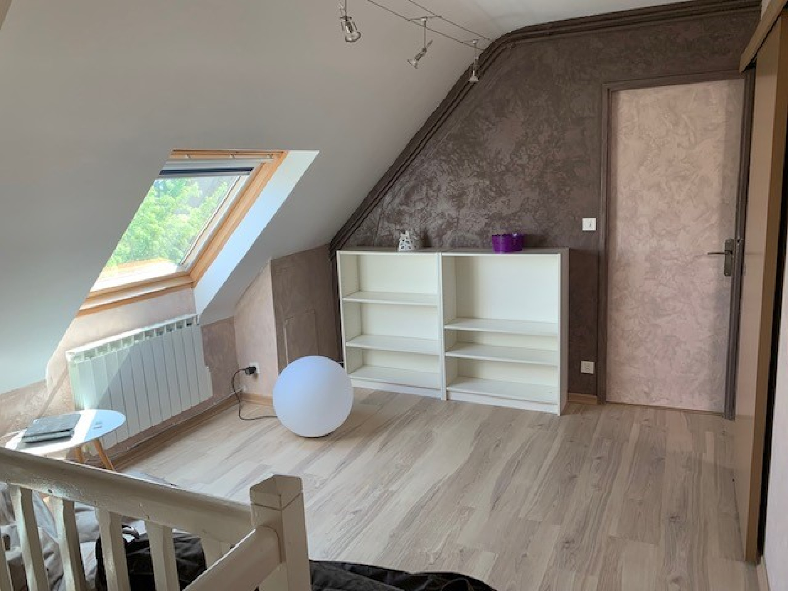 A l'étage : grand palier, 2 chambres, un bureau accessible depuis chambre, salle de bains.