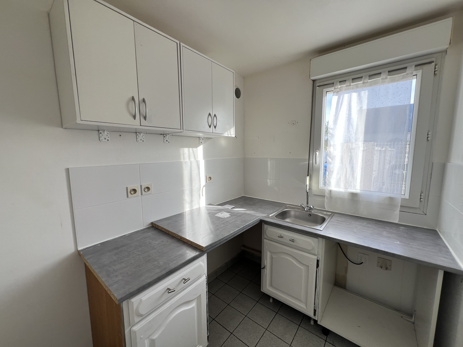 Entrée avec placard, salon, cuisine séparée, une chambre, salle de bains.