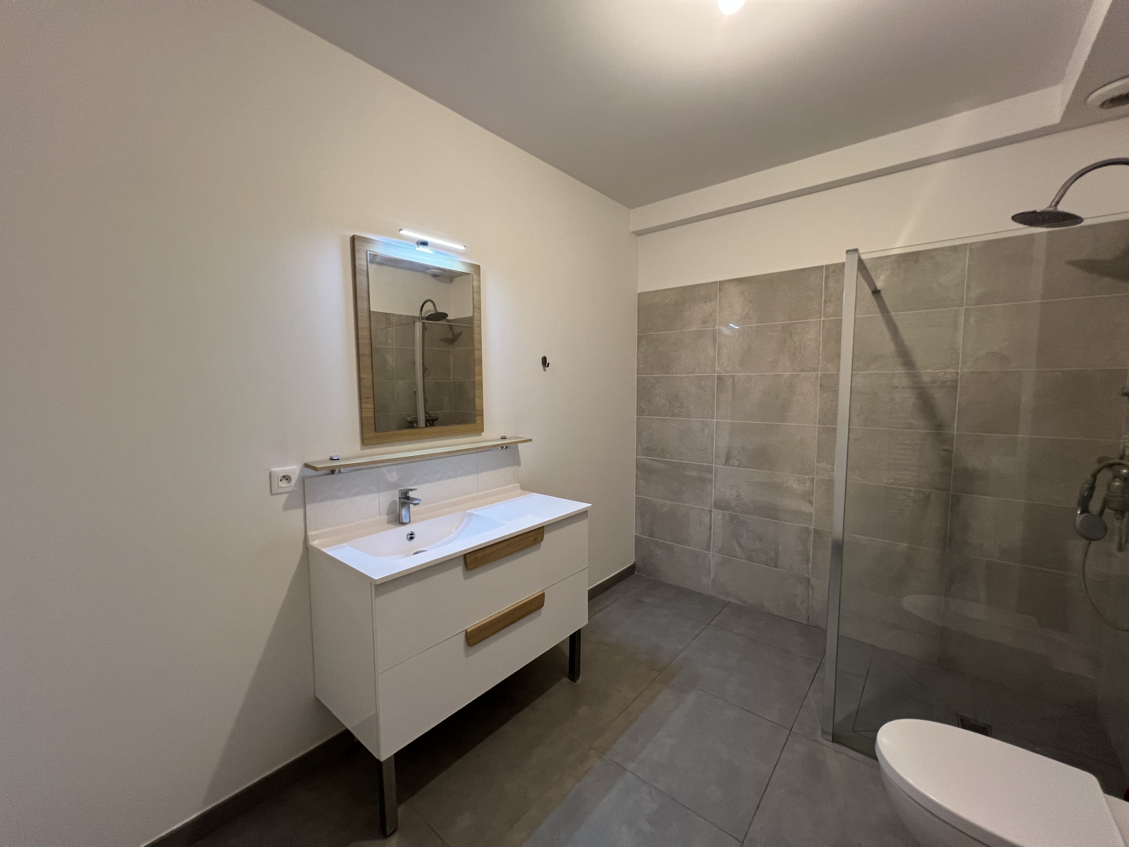 Rez-de-chaussée : salon avec cuisine ouverte avec accès terrasse, salle d'eau avec wc, cellier.